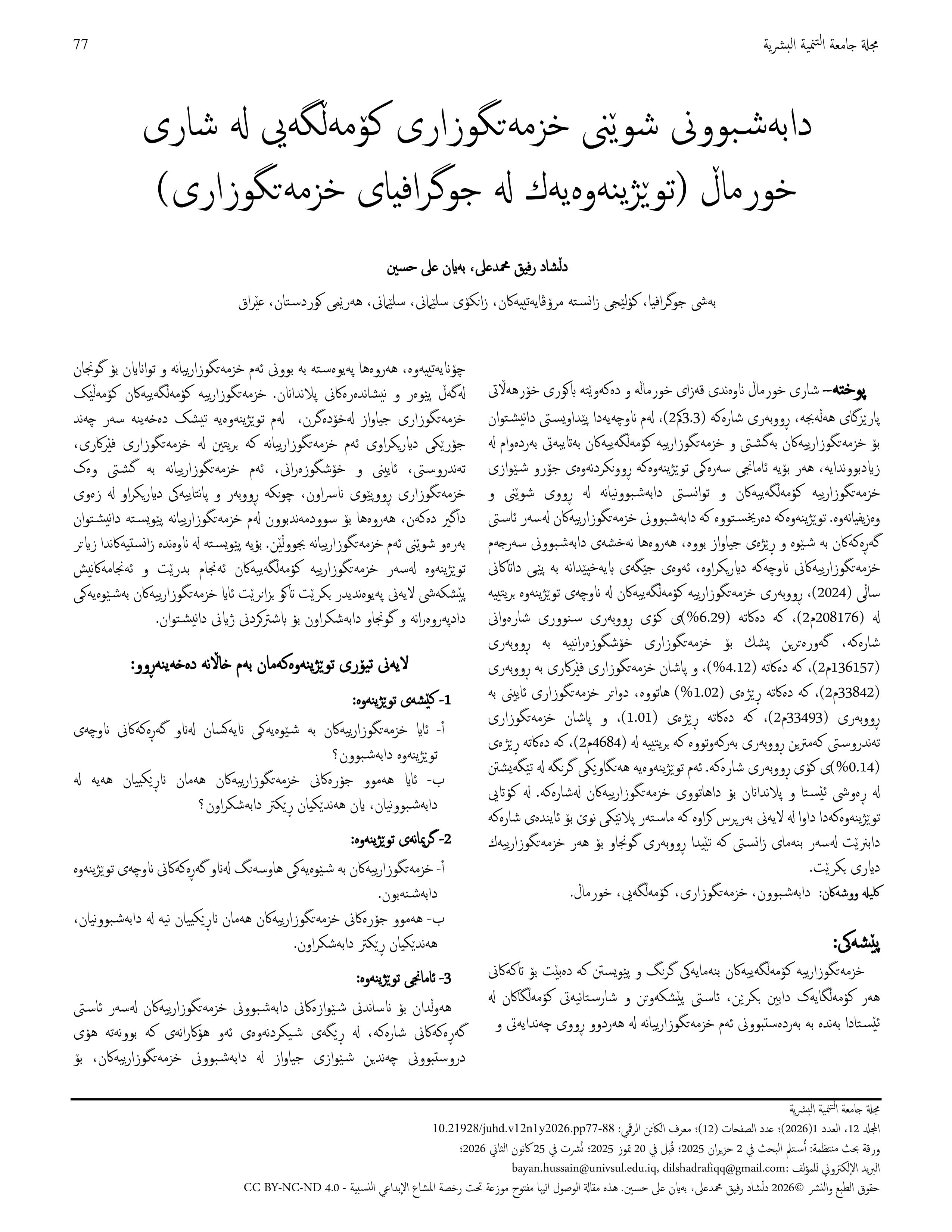 Spatial Distribution of Social Services in Khurmall City
